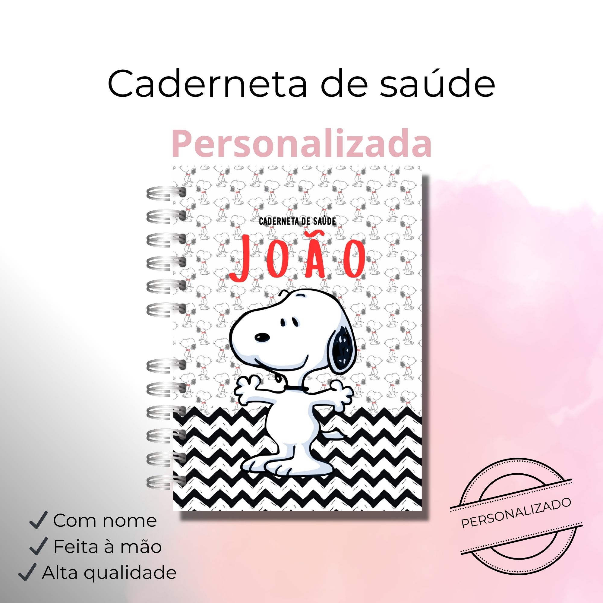 Encante-se com essa linda Caderneta de Saúde do Bebê tema Snoopy personalizada com nome, perfeita para acompanhar cada fase do crescimento do seu pequeno com muito carinho e organização